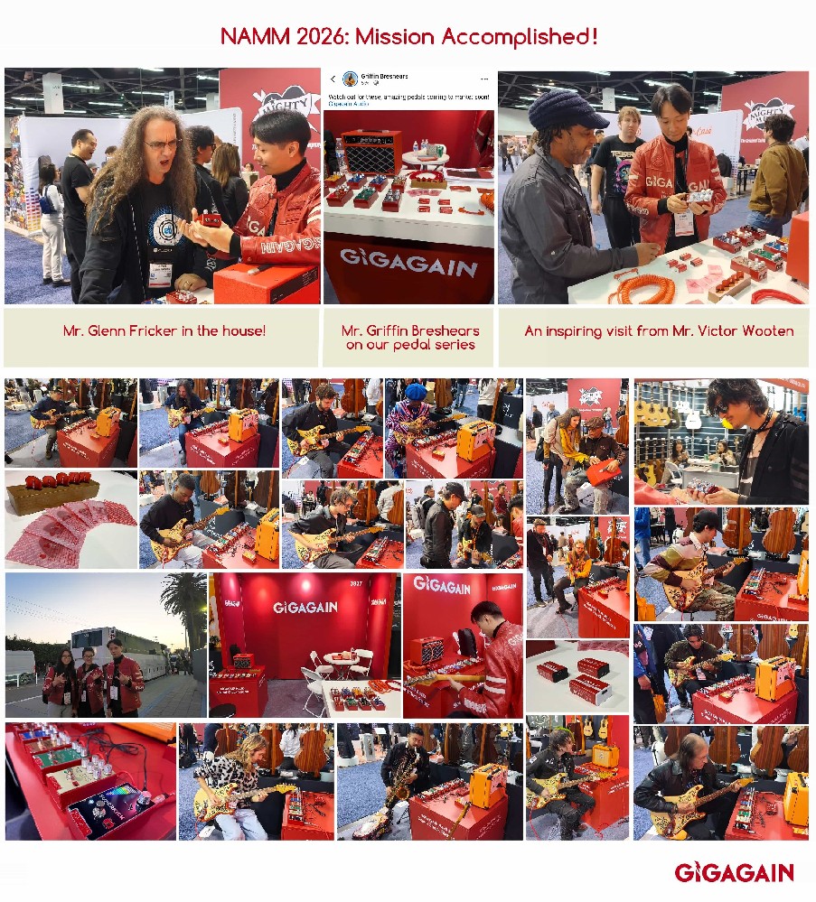The GIGAGAIN series of effects pedals is a thoughtfully crafted product line designed for music enthusiasts. We uphold meticulous standards for sound quality, with each unit undergoing extensive AP testing and comprehensive acoustic evaluation. In addition, we adopt a player-centric approach to determine where innovation is needed and how we can deliver more intuitive and versatile effects pedals.